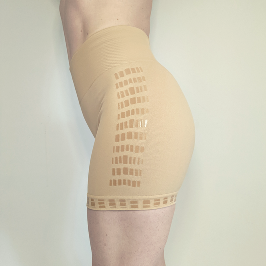 Our shorts are made to wear under your fitted skirt or dress. They have non slip silicone on the OUTSIDE - it clings to your skirt fabric and stops your skirt moving around.